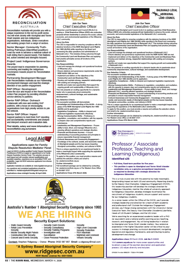 Use the links above to view/download the employment pages from recent editions. For our latest edition, buy a copy of the Koori Mail at your nearest major newsagency.